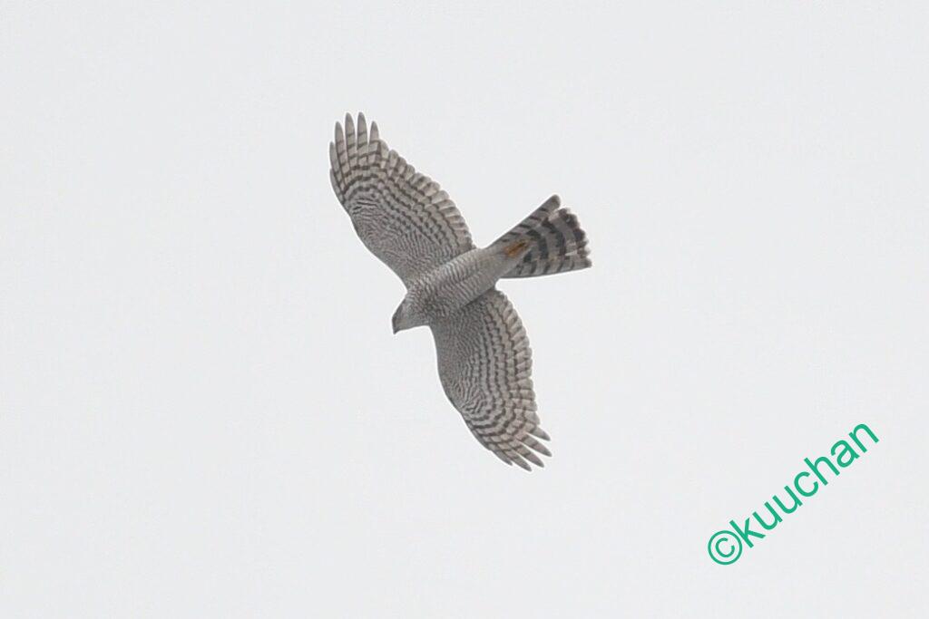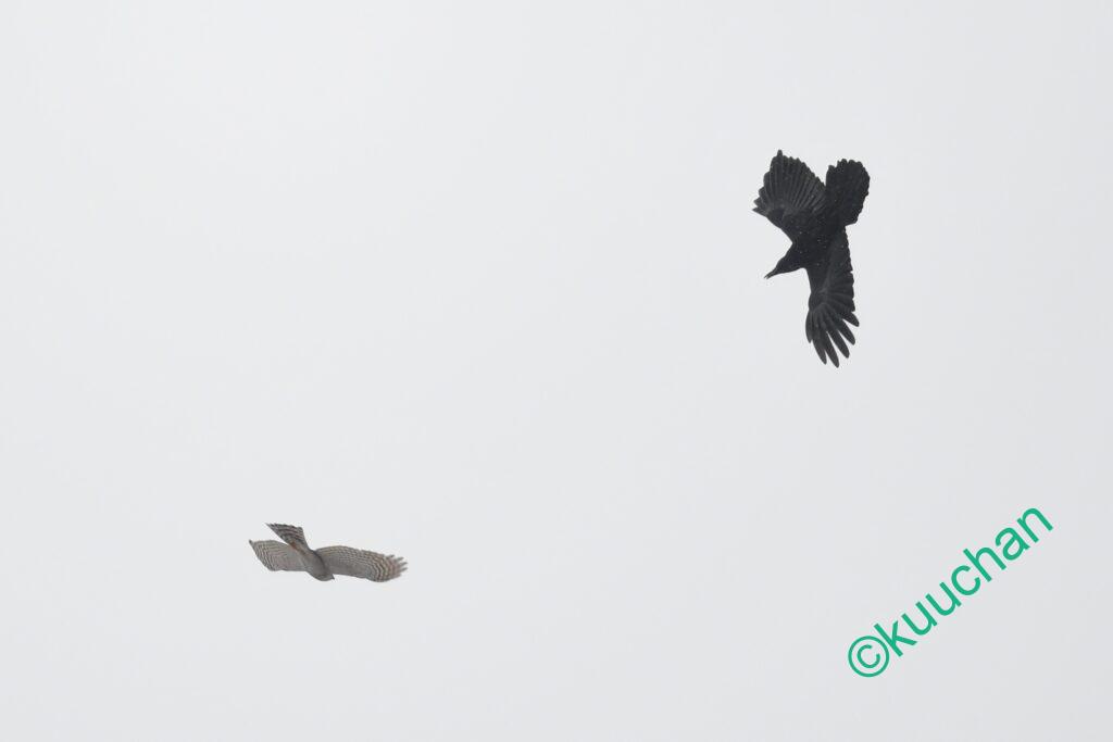 上空では、ハイタカとカラスがバトルを繰り広げていました。