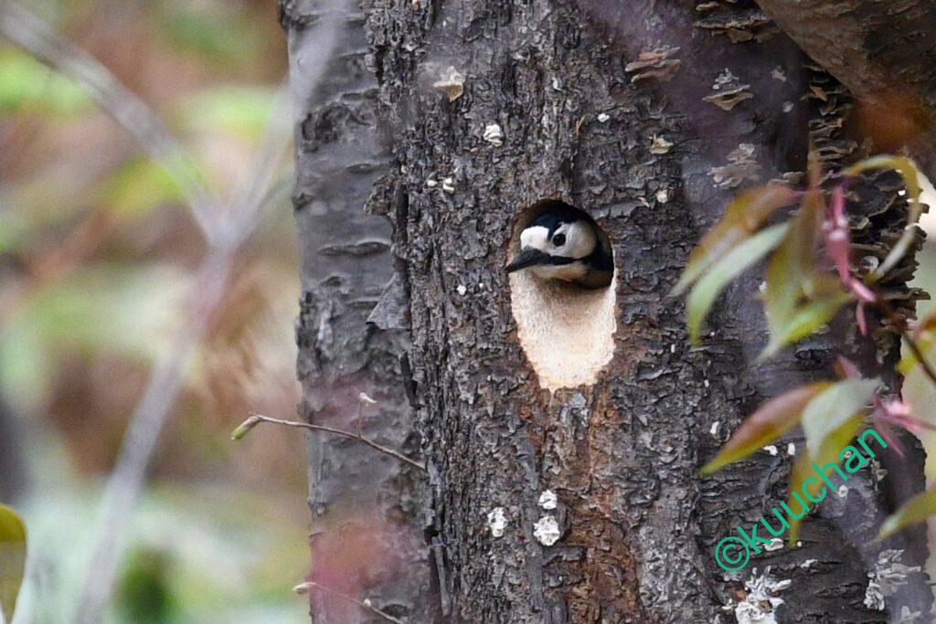 巣穴が深くなるにつれて、掘っている姿は見えず、穴から木屑がパッと飛び散るのが時たま見えるだけとなっていましたが、どうやら完成して抱卵にはいったのではないかと思います。