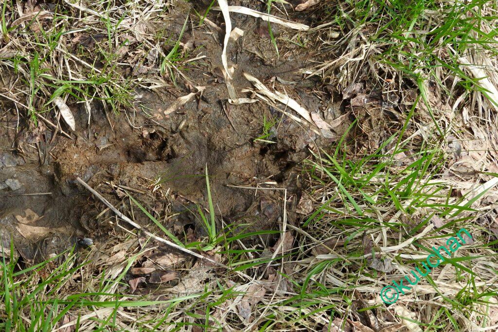 帰り道、目の前でさえずっているホオジロを見ていたら、謎の足跡を発見。テンかしら?