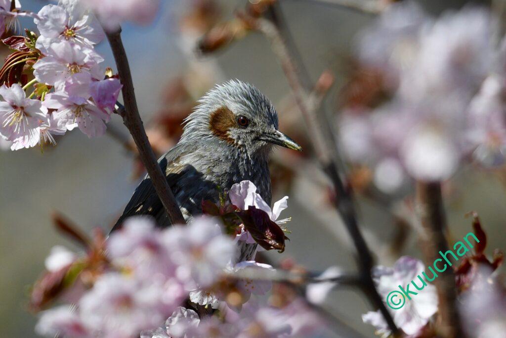 桜の蜜をなめにヒヨドリが来ていました。鳴き声が聞こえたので蜜が大好きなメジロも近くにいたようです。