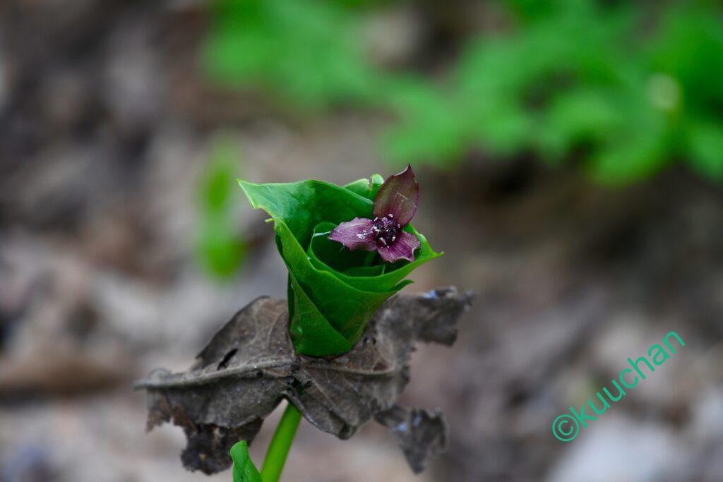 どれぐらい小さいかというと、エンレイソウがパラソルに見えるくらい小さいのです。かわいい!