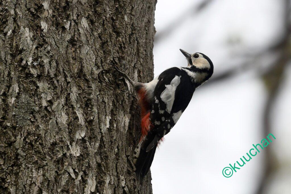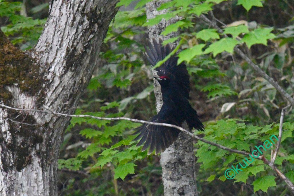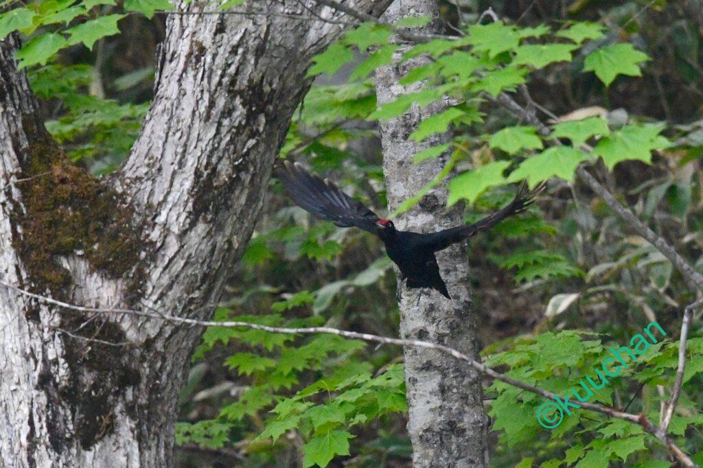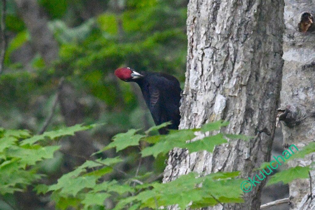 クイクイクイクイ…おおっと、クマゲラの登場だ!! でも薄暗くてよくわからない。かろうじて影が飛んだのが見えました。