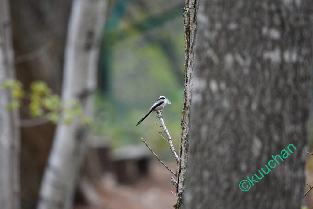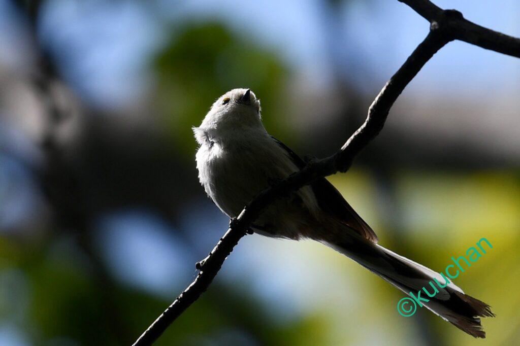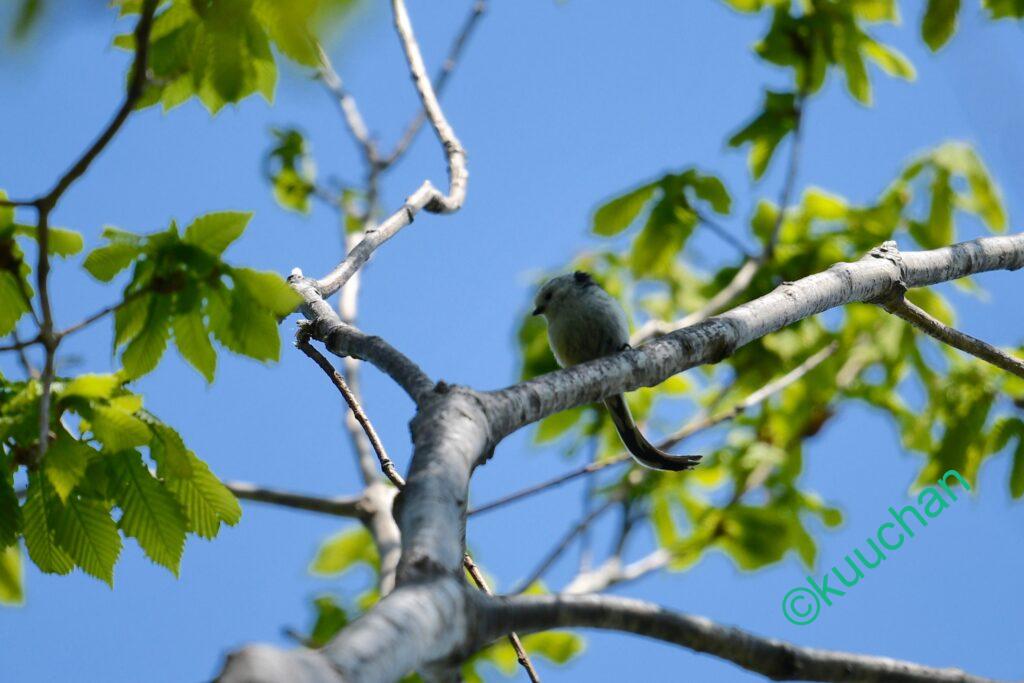 先月は仕事中で確認できませんでしたが、今日お散歩に行くと、小さなくちばしにいっぱいの鳥の羽をくわえたシマエナガに出会いました。