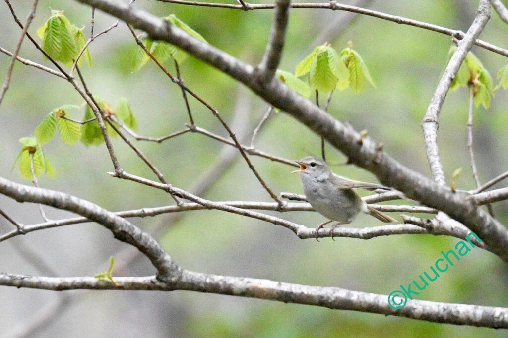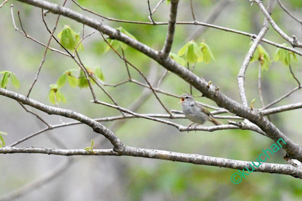 春のはじめに散歩に出ると、下手くそなさえずりを聞くことがあります。これはまだ若いオスのウグイス。
