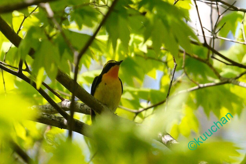 シマエナガと共に、キビタキがすぐ近くでずっとさえずっていました。
