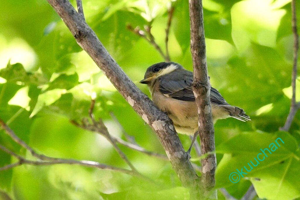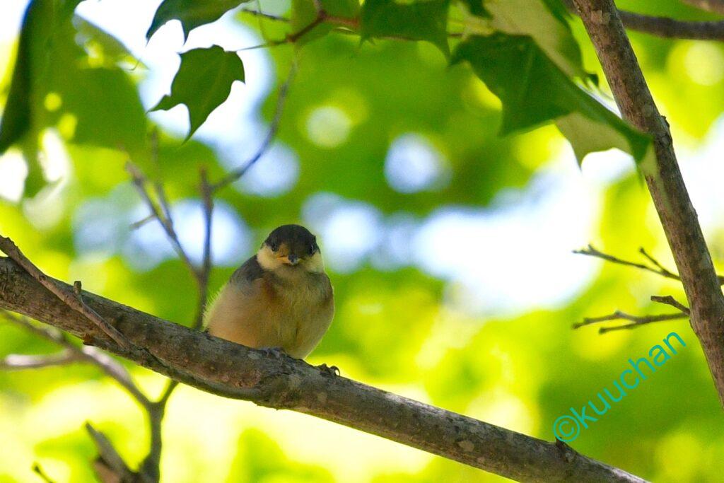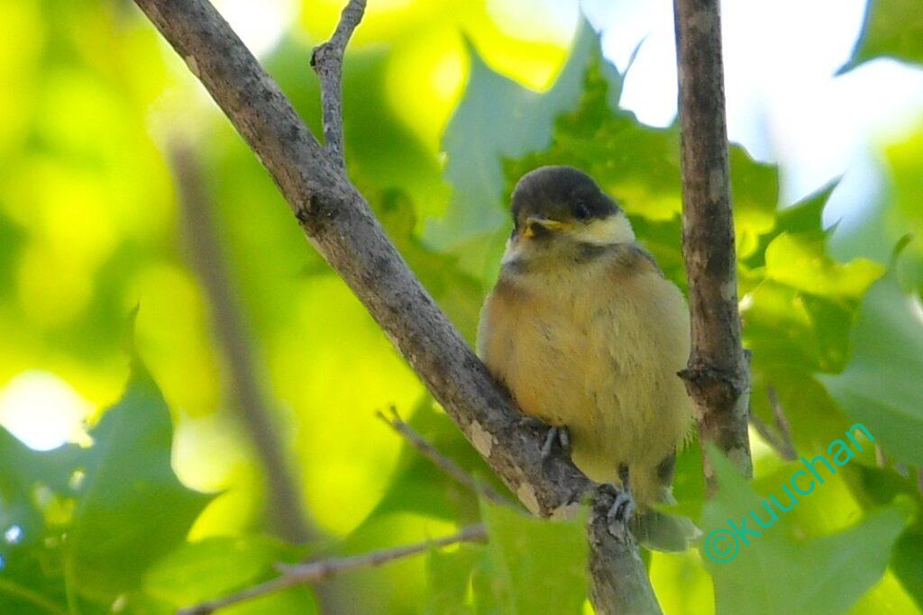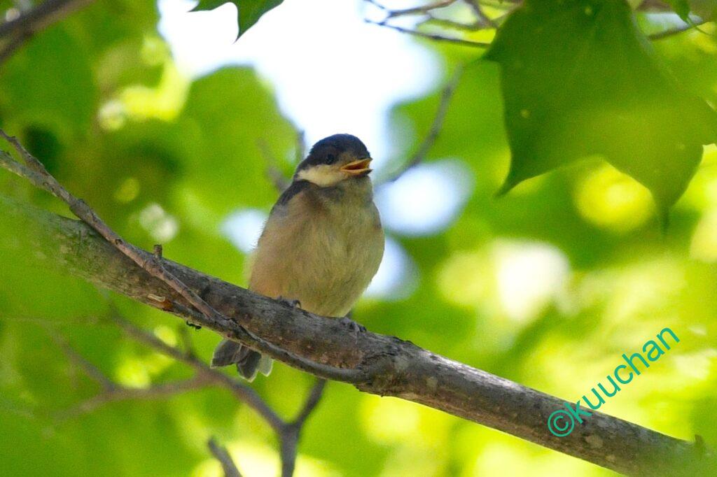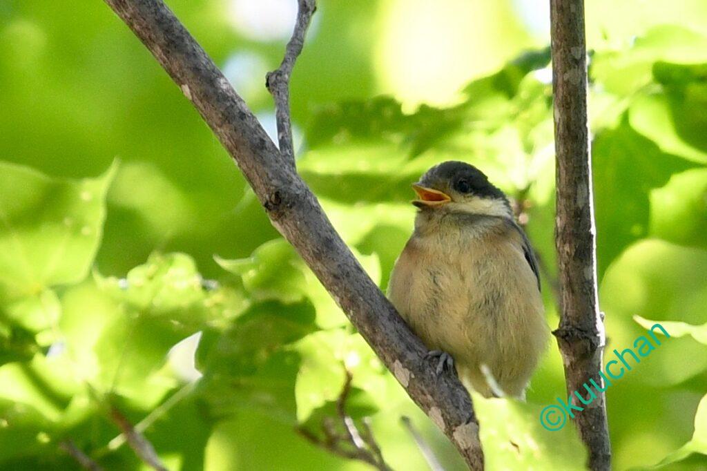 巣立ったばかりなのでしょう。近くで親鳥が鳴いています。