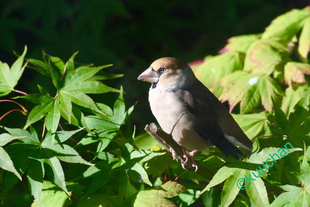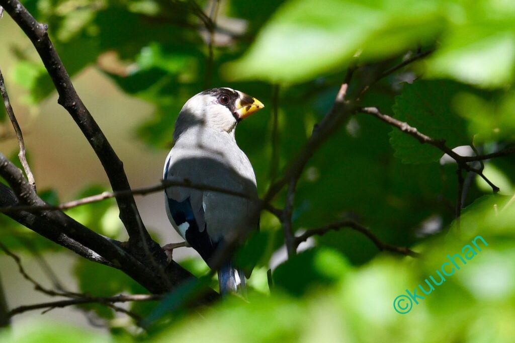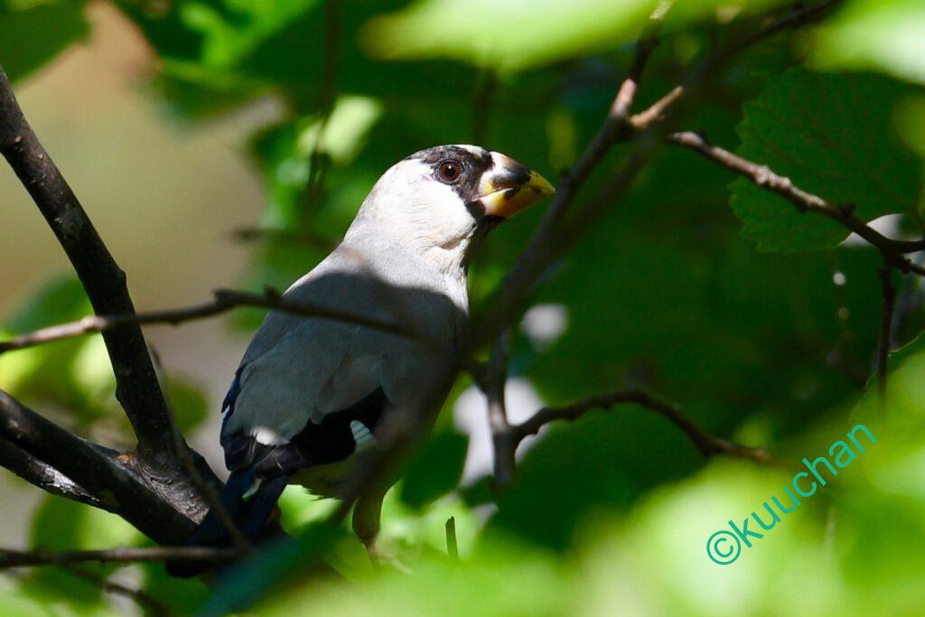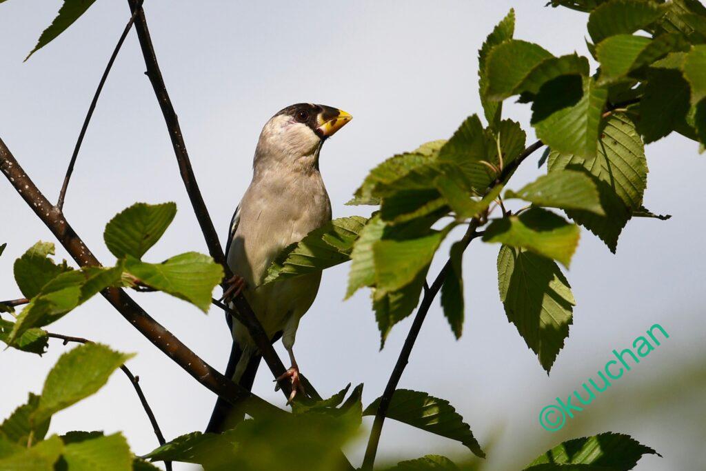 すると、かわいい鳴き声が。これは夏鳥のイカルですね。