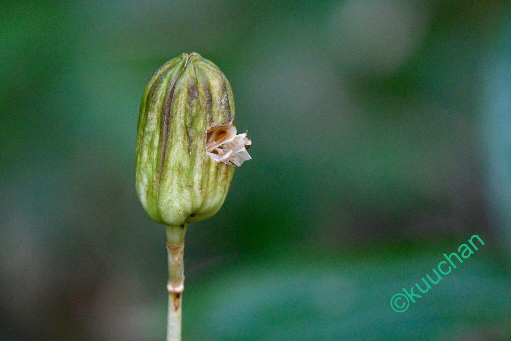 次はオオウバユリの実。誰かがつついて種を食べたようですよ。