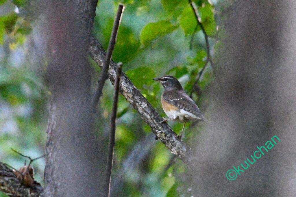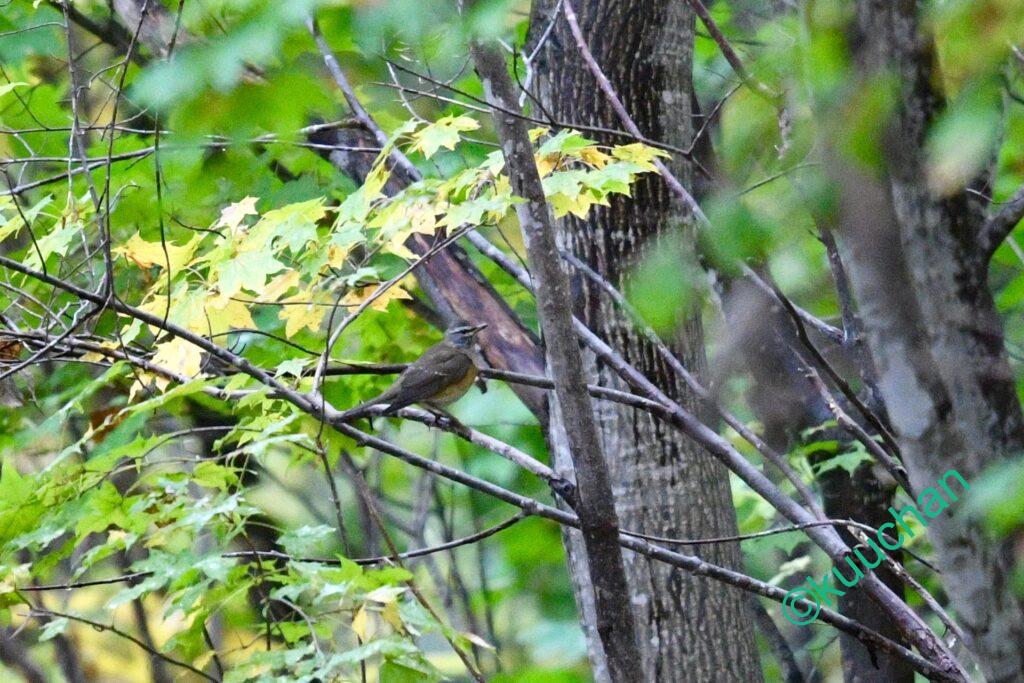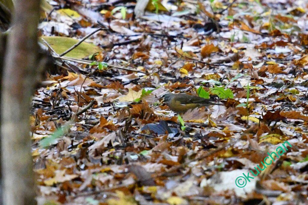 その時、きれいな声が聞こえてきました。一瞬だったけれど、これはクロツグミの美声!! あっ、いた!!