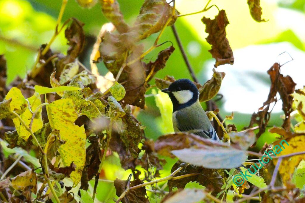 ヤマブドウを食べているようで、高いところにいる子が多く、また警戒心も強いようで、地面近くに降りてきても、少しでも近づくとパッと飛び立ってしまい、遠くからの撮影となりました。