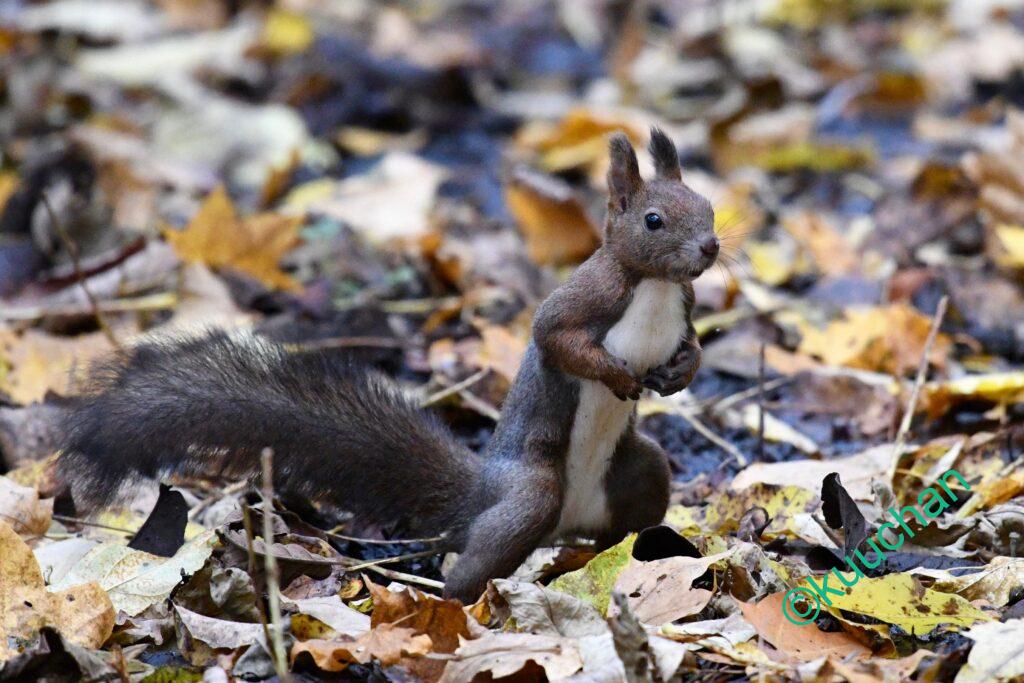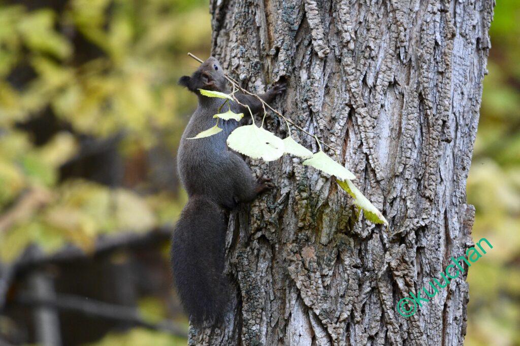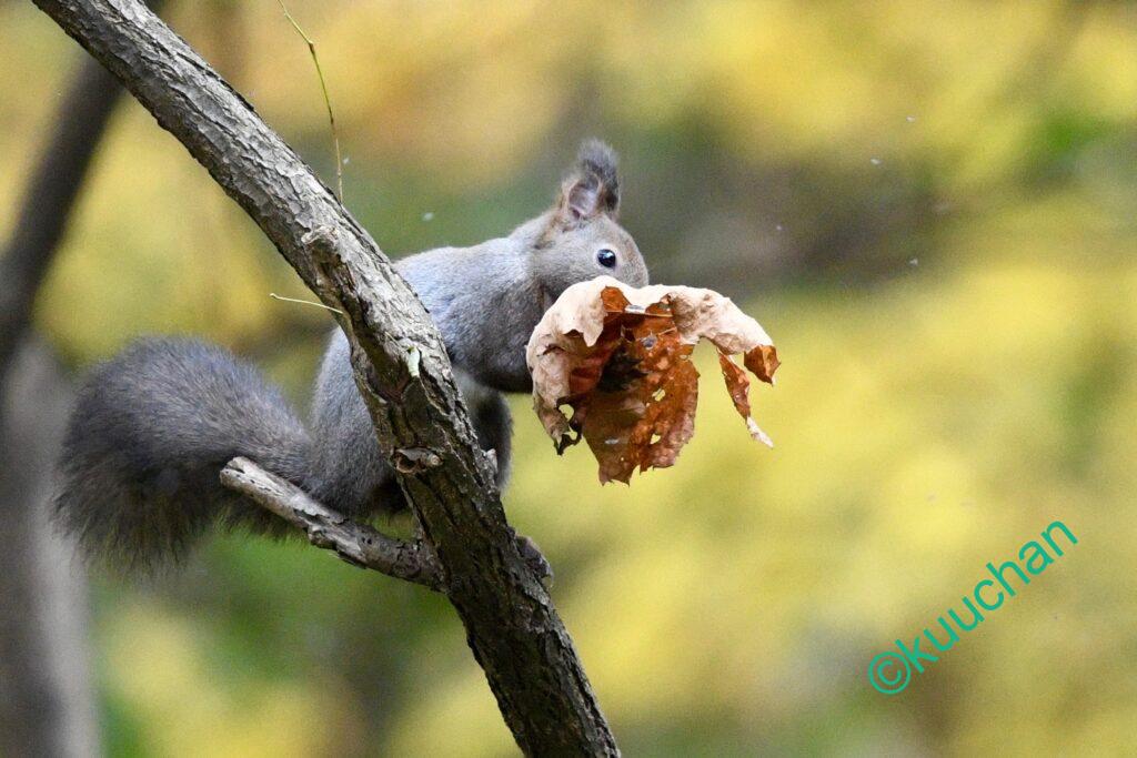 そして今日、散歩をしていたら木の葉を集めているエゾリスに会いました。