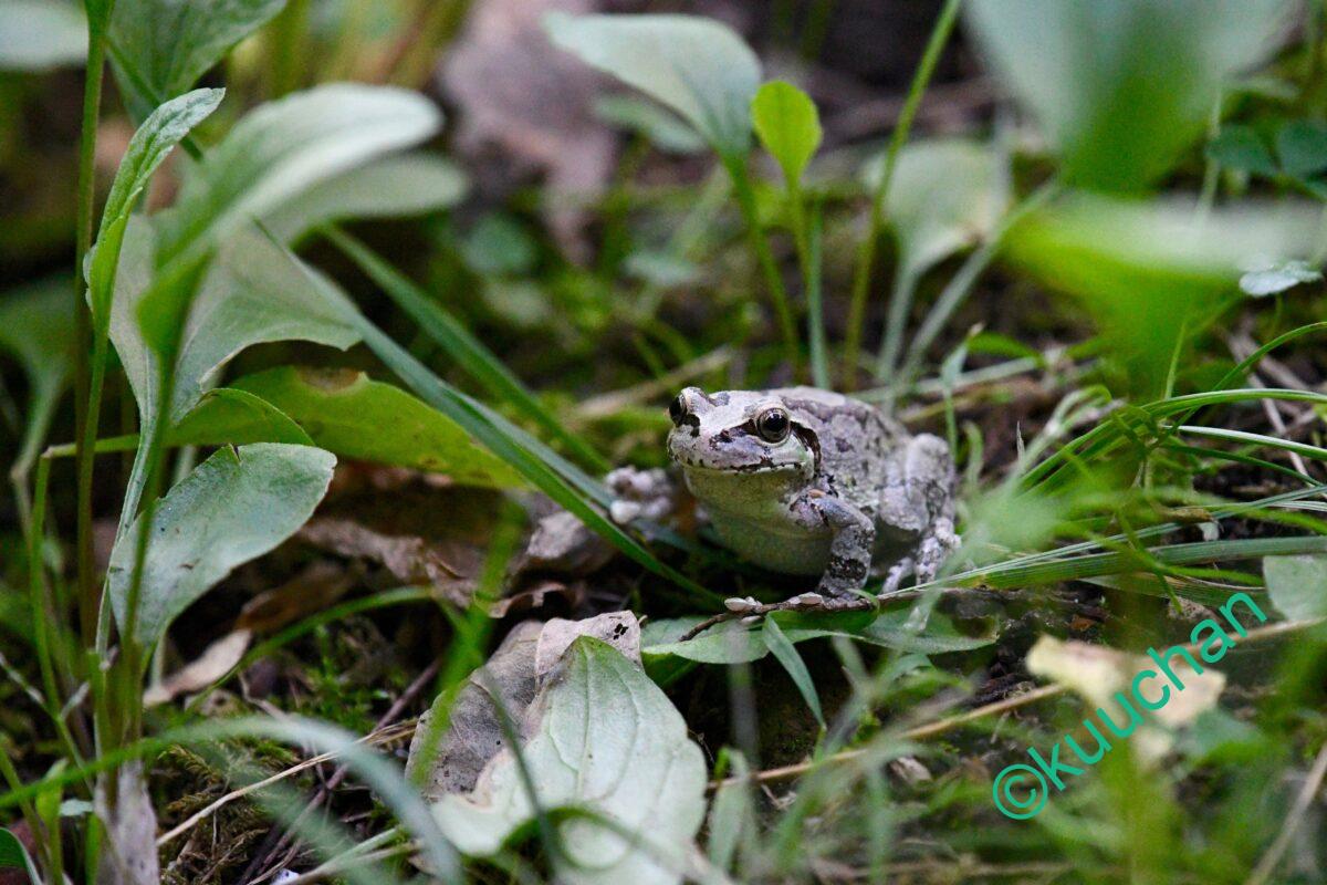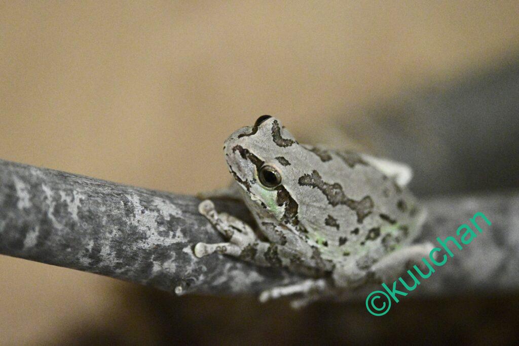 基本的にアマガエルは黄緑色の背中をしていますが、この子のように灰色になったり、茶色や黄色の子もいます。住んでいる環境によって変えることができるのですね。
