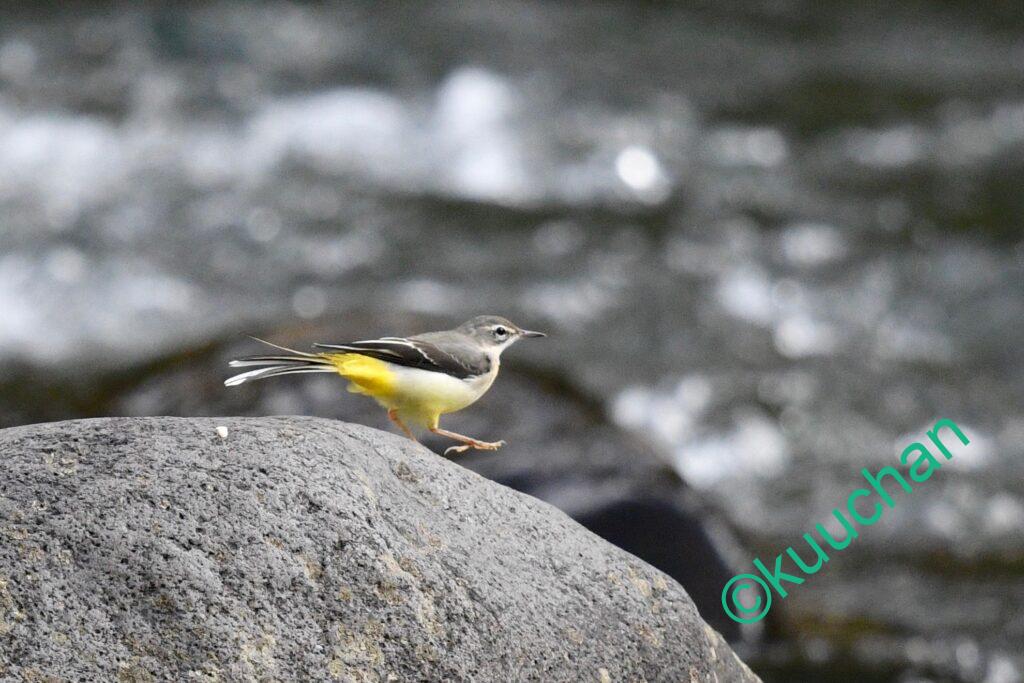 なんだか歩く気がしなくなって、川岸で休憩していると、8羽ほどのキセキレイが川面を行ったり来たりしていました。