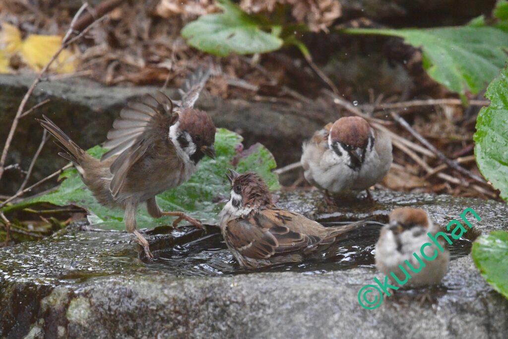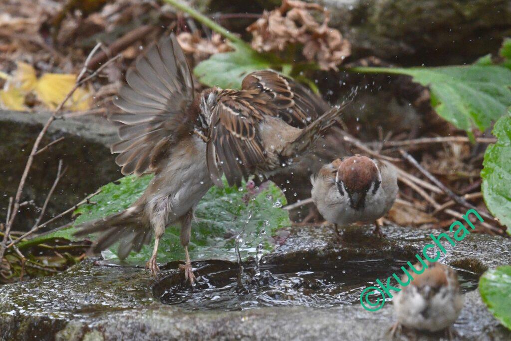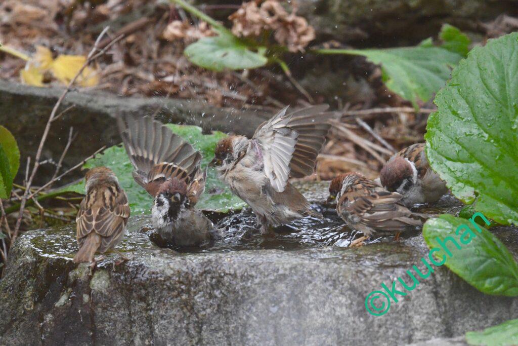 毎朝、スズメたちが水浴びにやってくるのが楽しくて、毎日水を入れ替えてきれいな状態を保つようにしています。