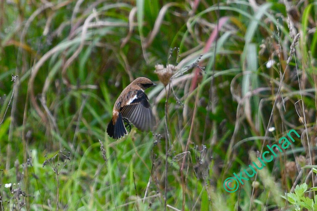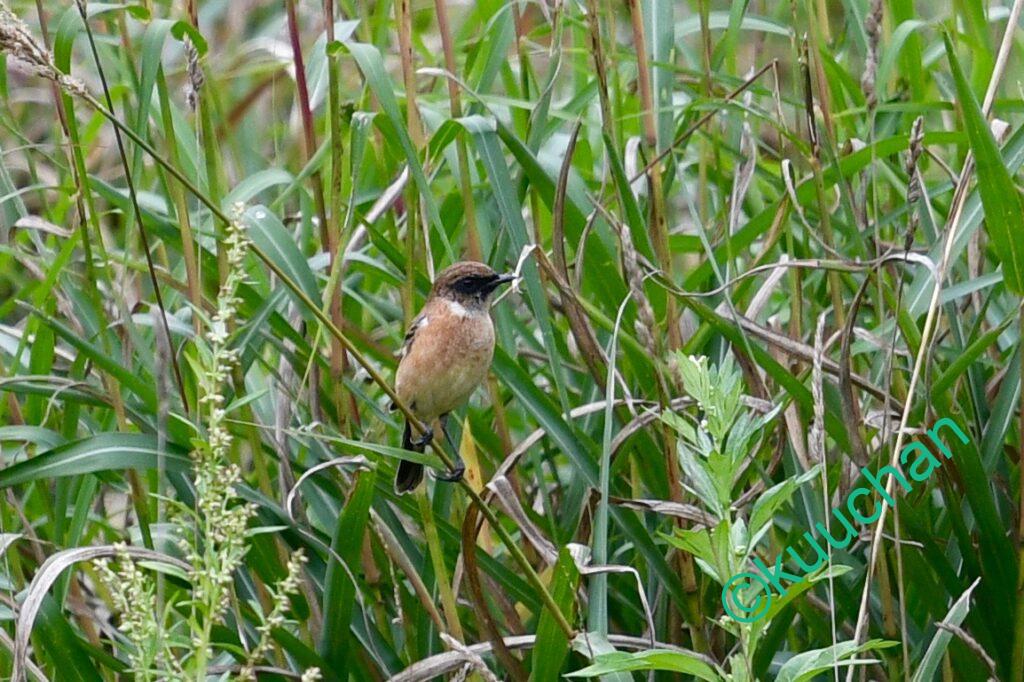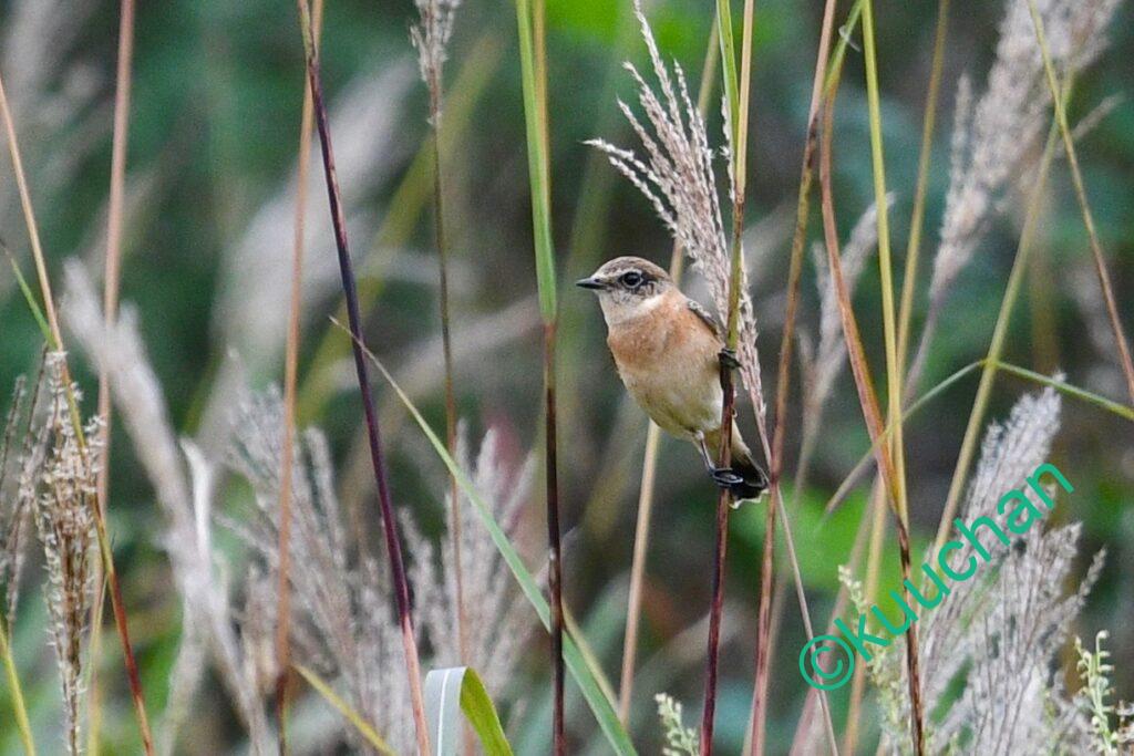 私の散歩道にはノビタキが好む開けた草地があまりないため、出会いは少ないのですが、秋になると渡りの途中の個体を見かけます。