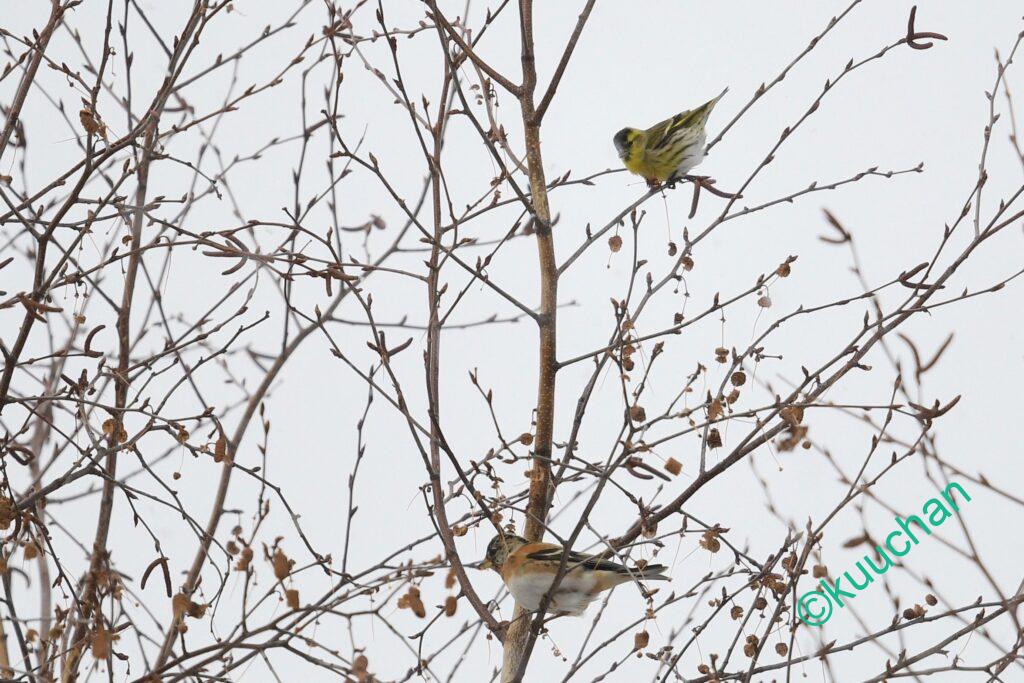まずはアトリが飛び立ち、マヒワとカワラヒワが続いて山の方へ去りました。シメも徐々に姿が見えなくなりました。