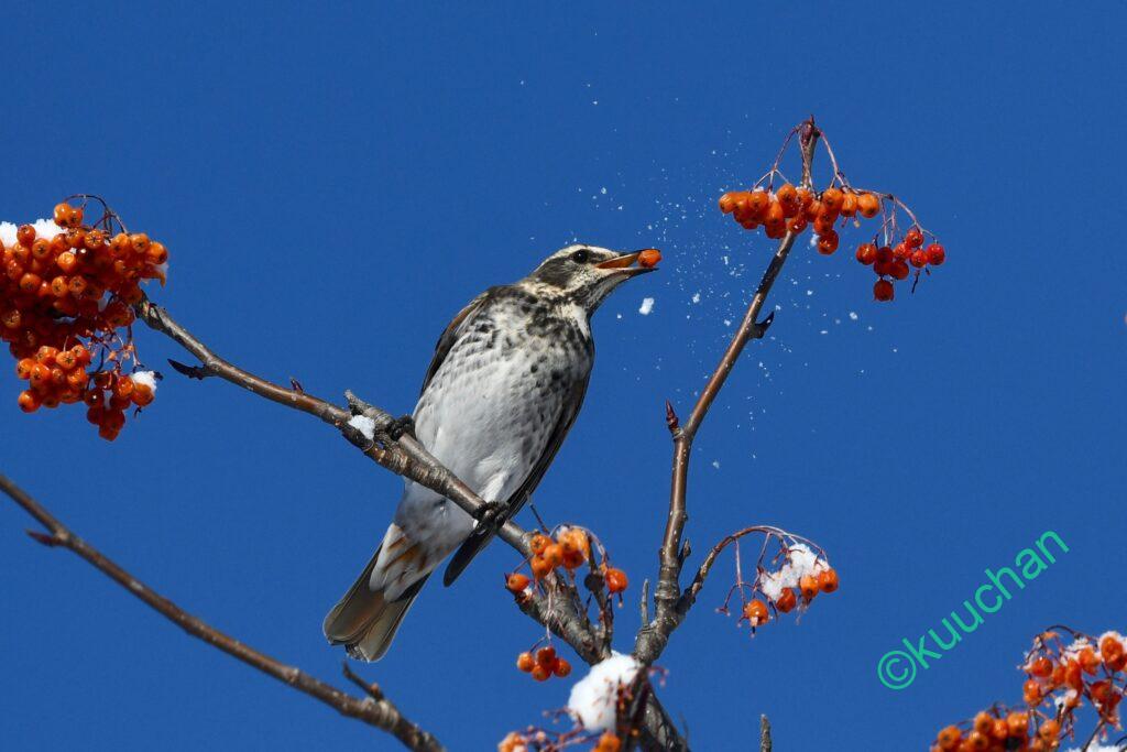 でも、ツグミたちが嬉しそうにナナカマドの実を食べる様子がとてもかわいかったですよ。