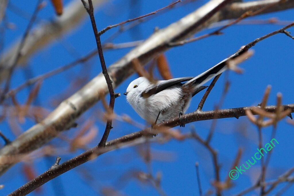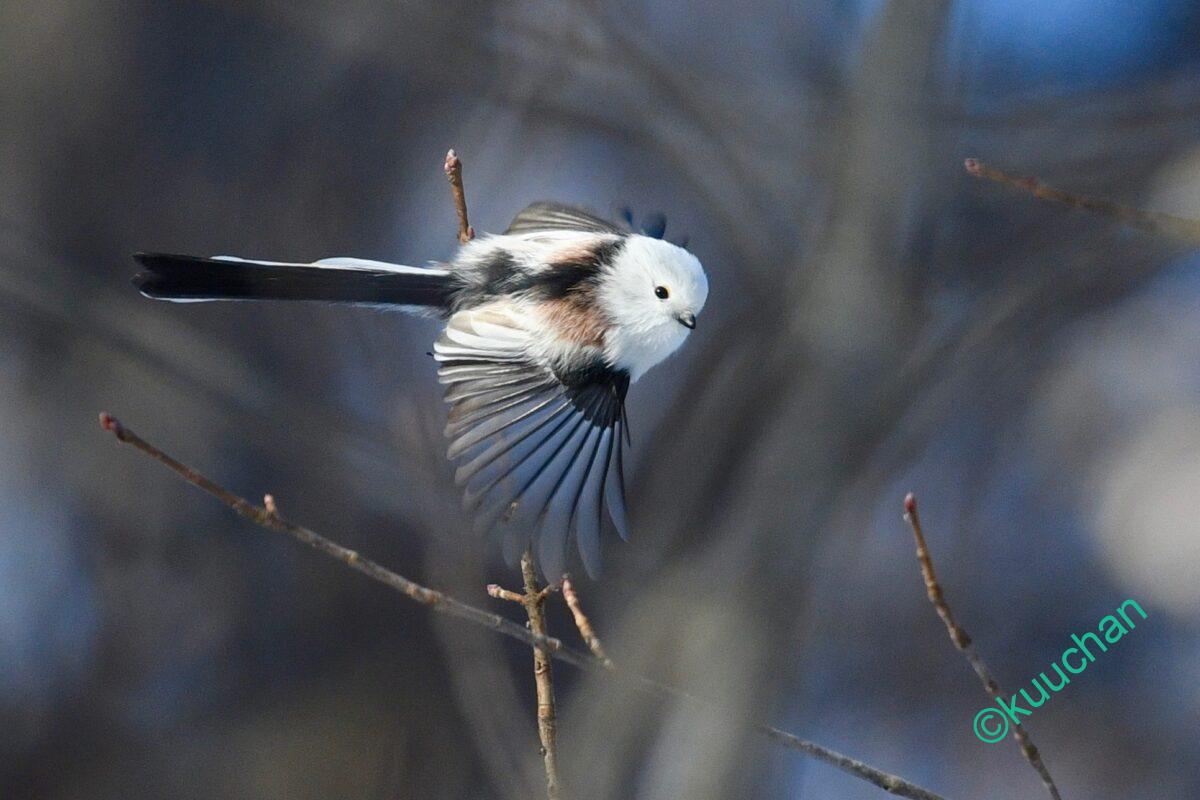 今日は、声がしたほうを見ていると、6羽ほどのシマエナガが木の梢をグルグルと激しく飛び回っていました。
