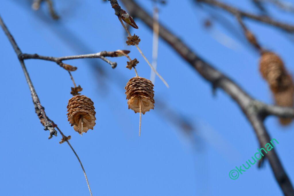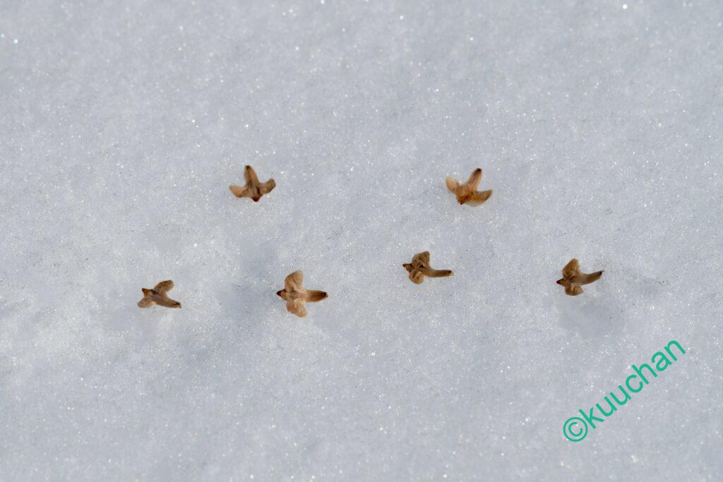 シラカバの種も、まるで蝶々のような羽がついた形をしているのですが、写真を撮った場所には残っていませんでした。鳥が食べちゃったかな?