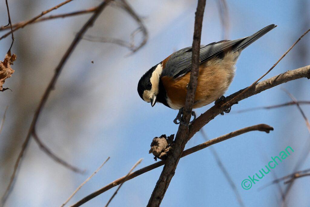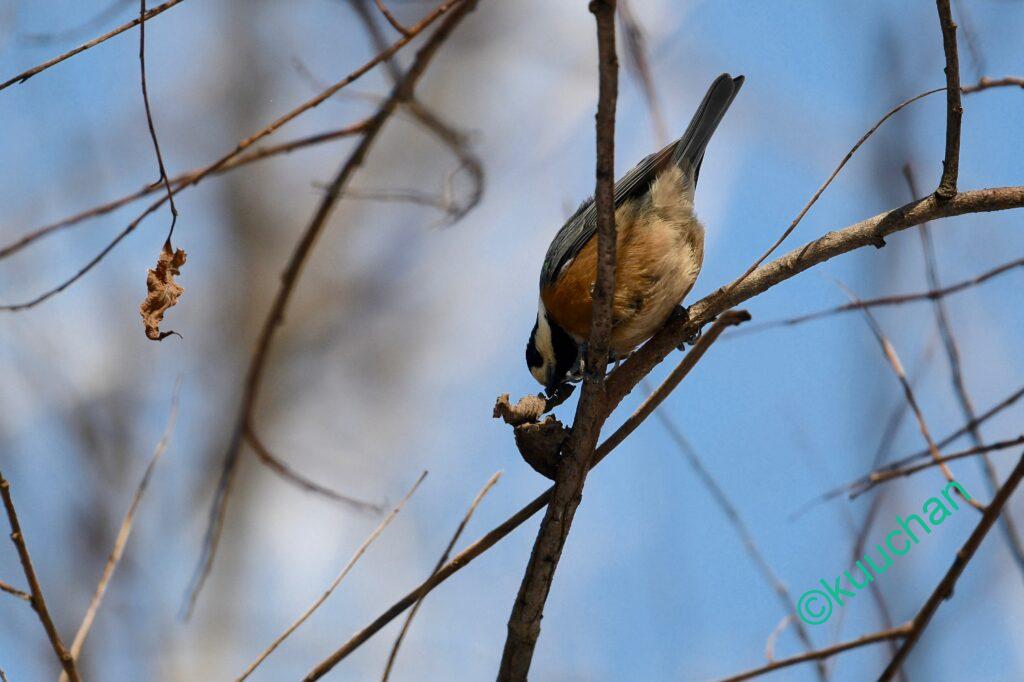 ん? ヤマガラが食べているのはなにかな?? 葉っぱ??