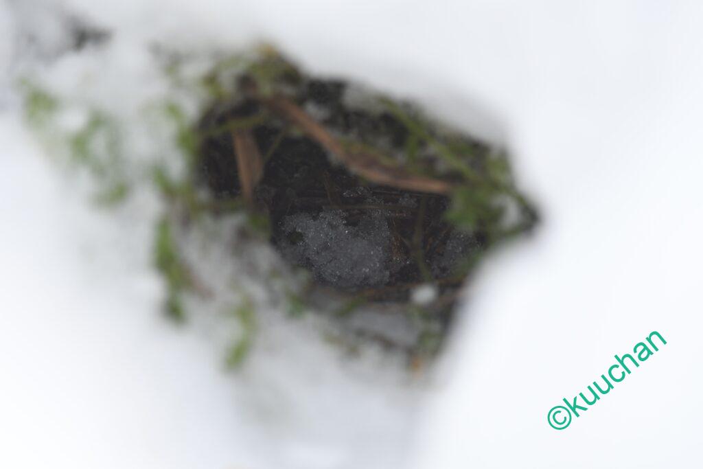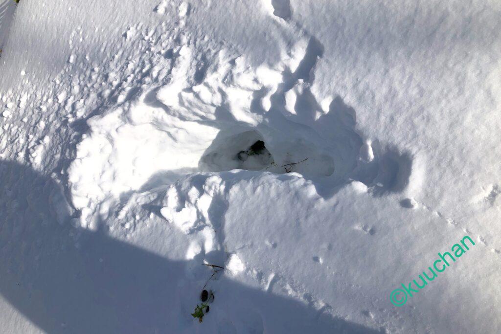 底を見ると、どうやらネズミがいたらしい痕跡が。雪の上からよくわかりますね。本当にすごいです。