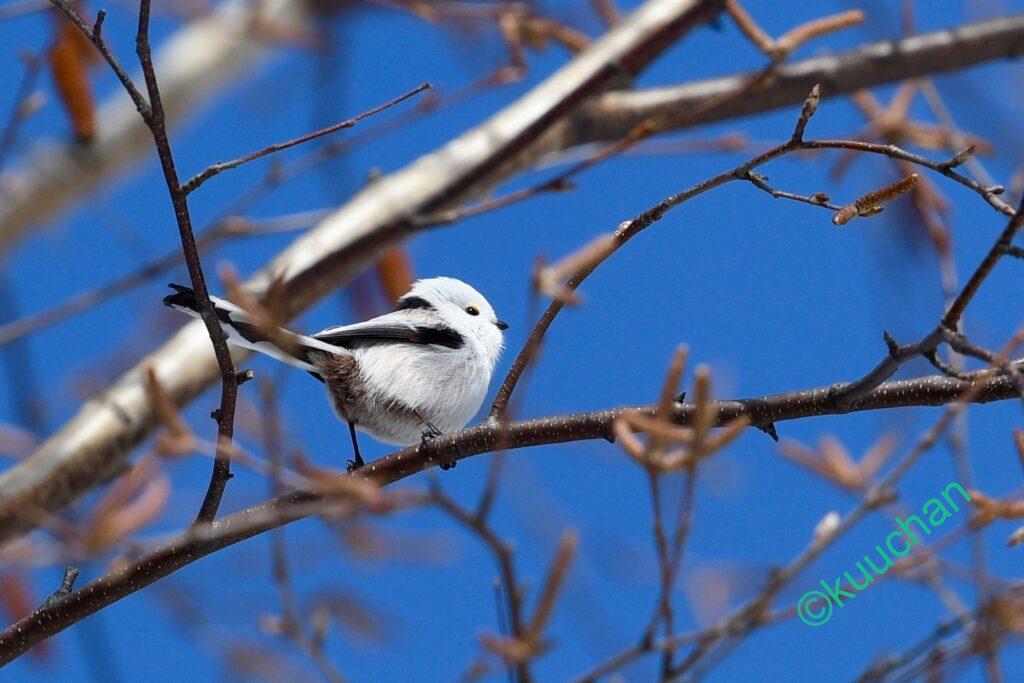 シマエナガのペアをよく見かけるようになってきました。つがいになると群れを離れて二羽で過ごすようになります。