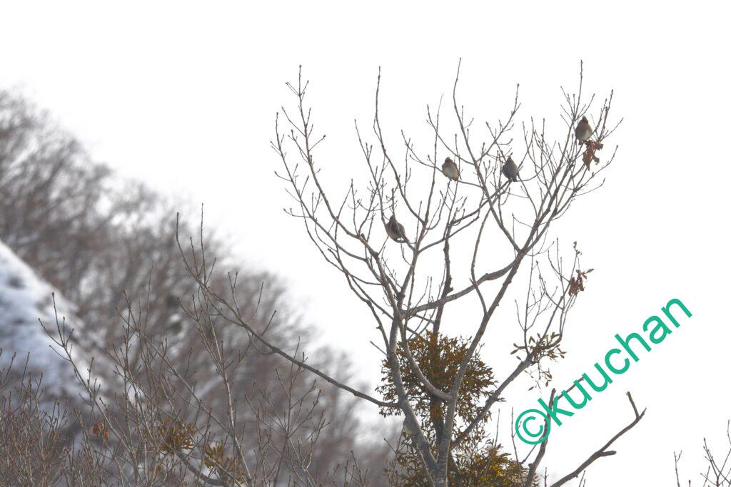 毎年、ここのヤドリギの実を食べに群れがやって来るのですが、やはり昨年の秋、どんぐりなどが不作だったのと同じく実が小さくて少ないです。大丈夫かな・・・。