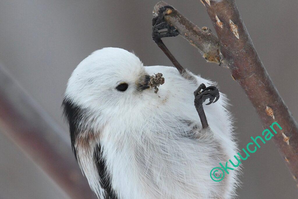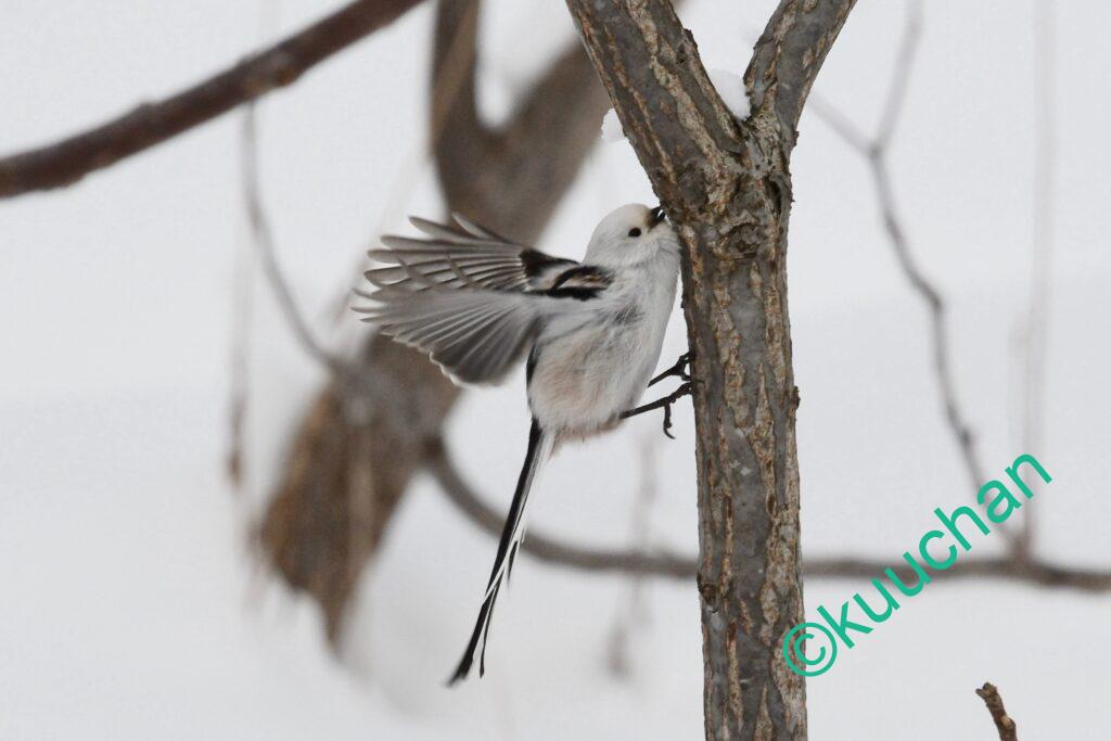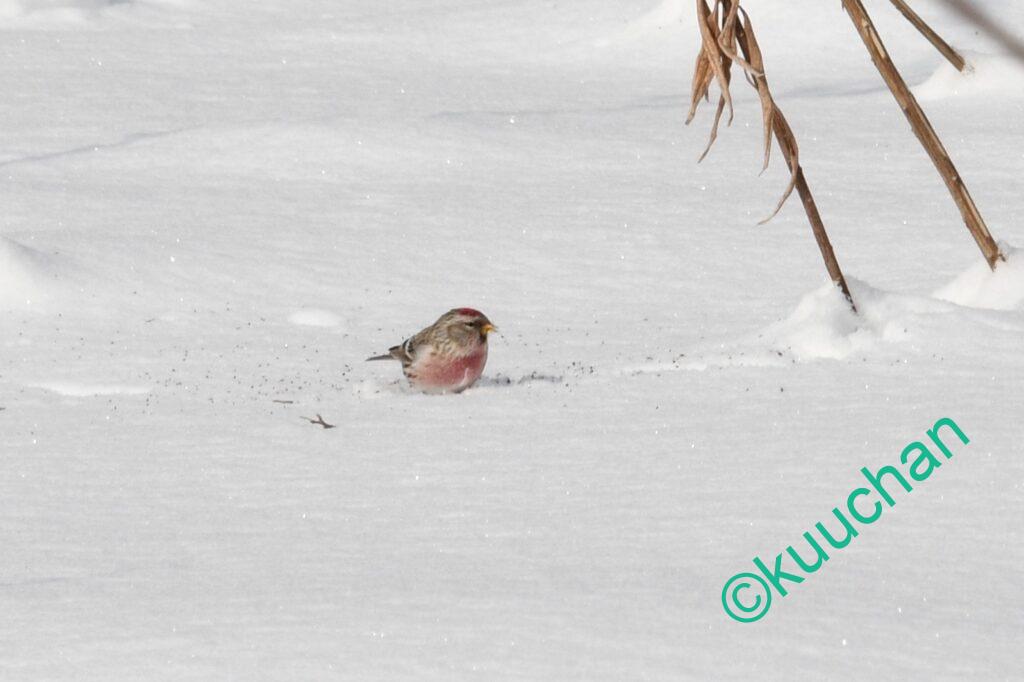 一生懸命に種を食べる姿がとてもかわいいのですが、食べた後、雪面に落として散らばってしまった種も、降りて行ってせっせとついばんでいるのがめんこい(北海道弁)です。