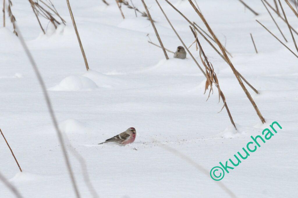少し先にすすんだところにも数羽のベニヒワがいて、全部で10羽にも満たない小さな群れのようでした。