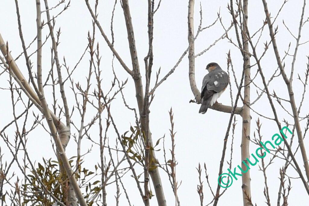 どうやら近くに天敵がいたようです。ほら、ハイタカが飛んできた!!
