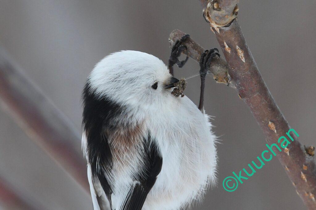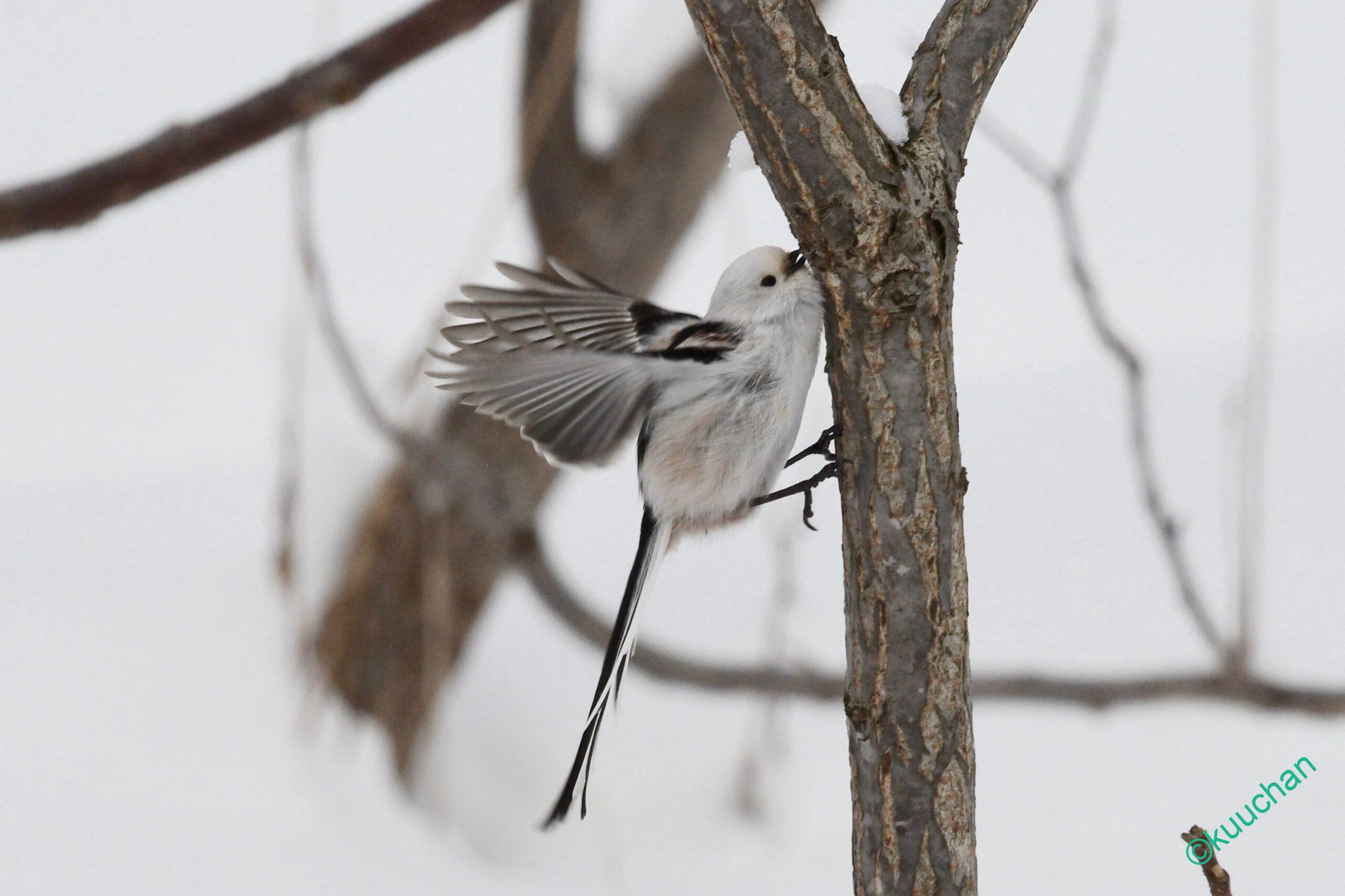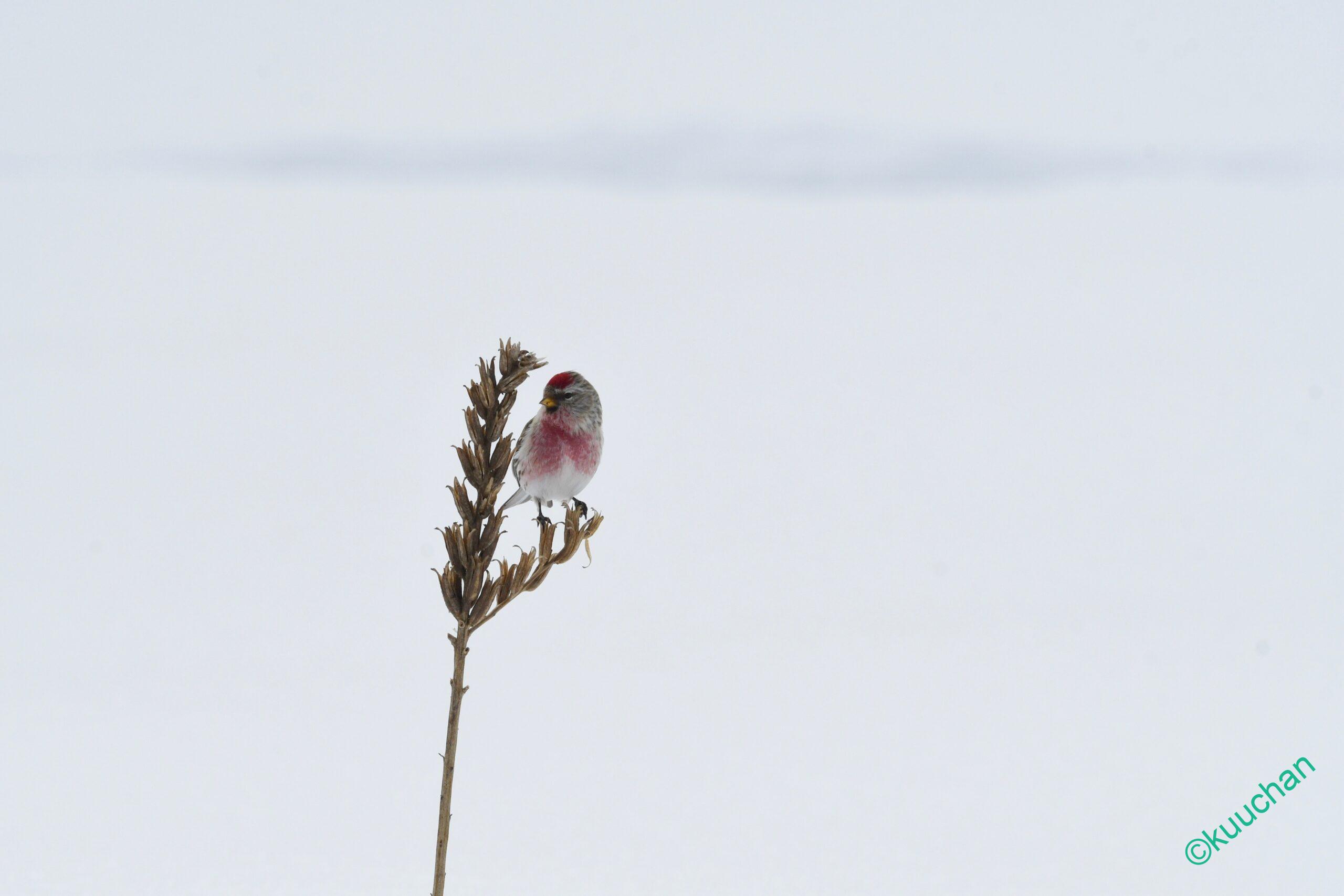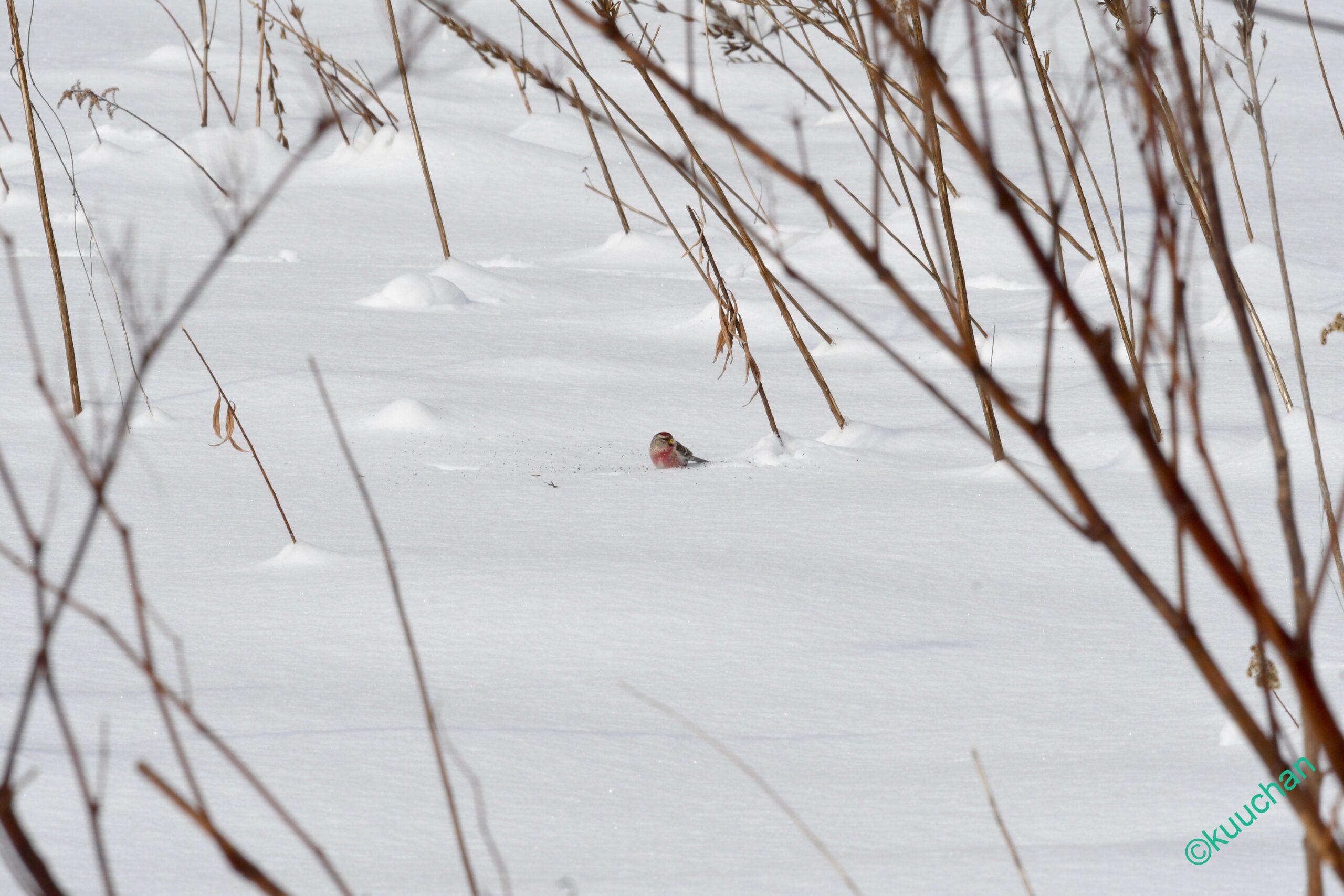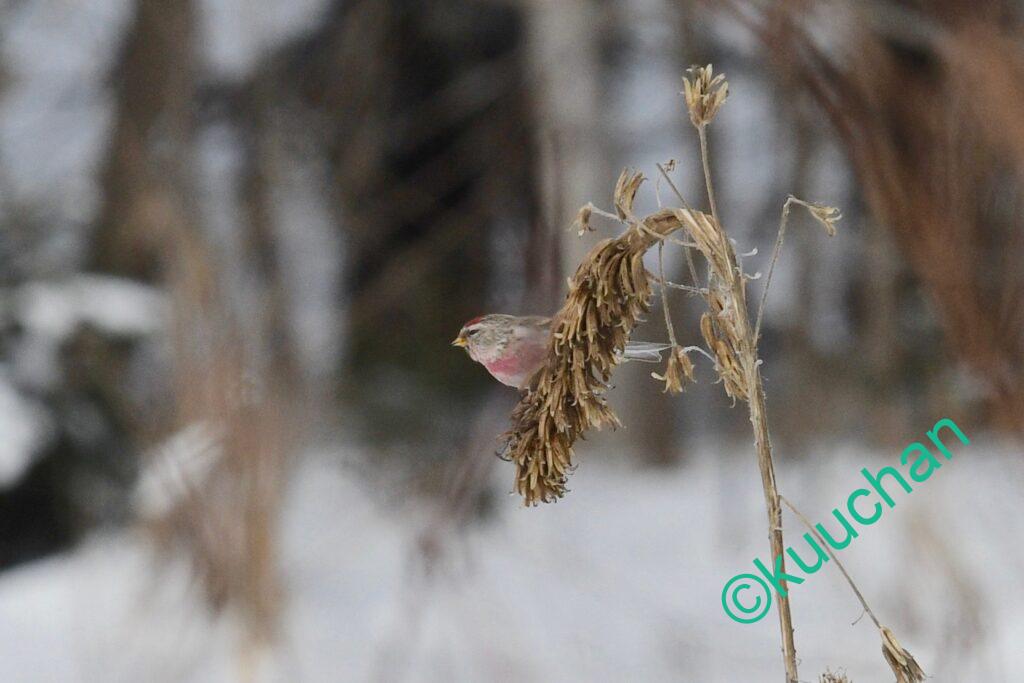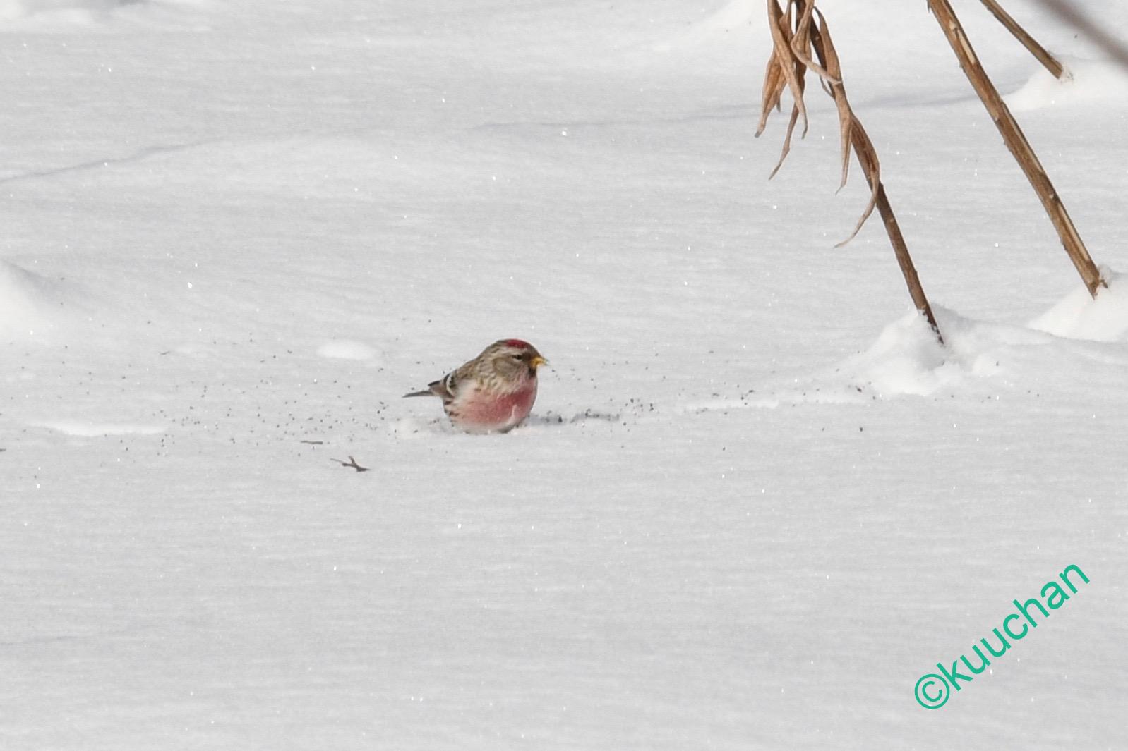 一生懸命に種を食べる姿がとてもかわいいのですが、食べた後、雪面に落として散らばってしまった種も、降りて行ってせっせとついばんでいるのがめんこい(北海道弁)です。