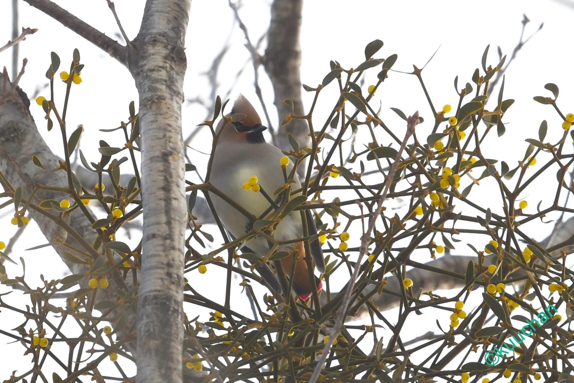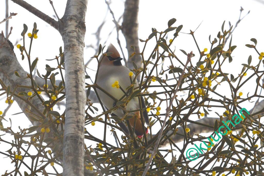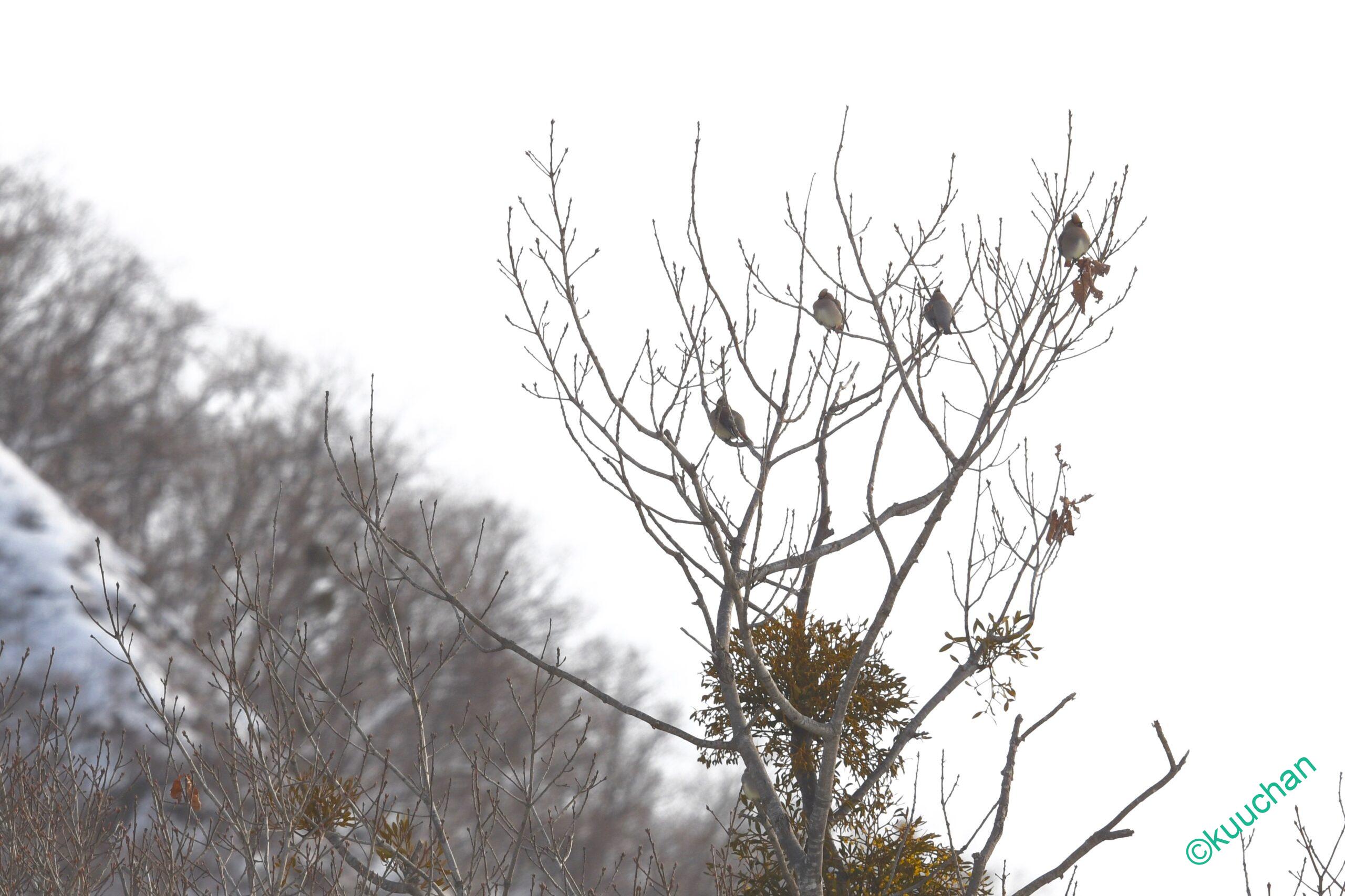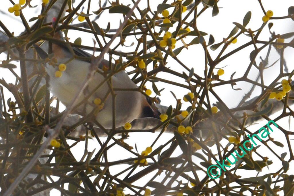 毎年、ここのヤドリギの実を食べに群れがやって来るのですが、やはり昨年の秋、どんぐりなどが不作だったのと同じく実が小さくて少ないです。大丈夫かな・・・。