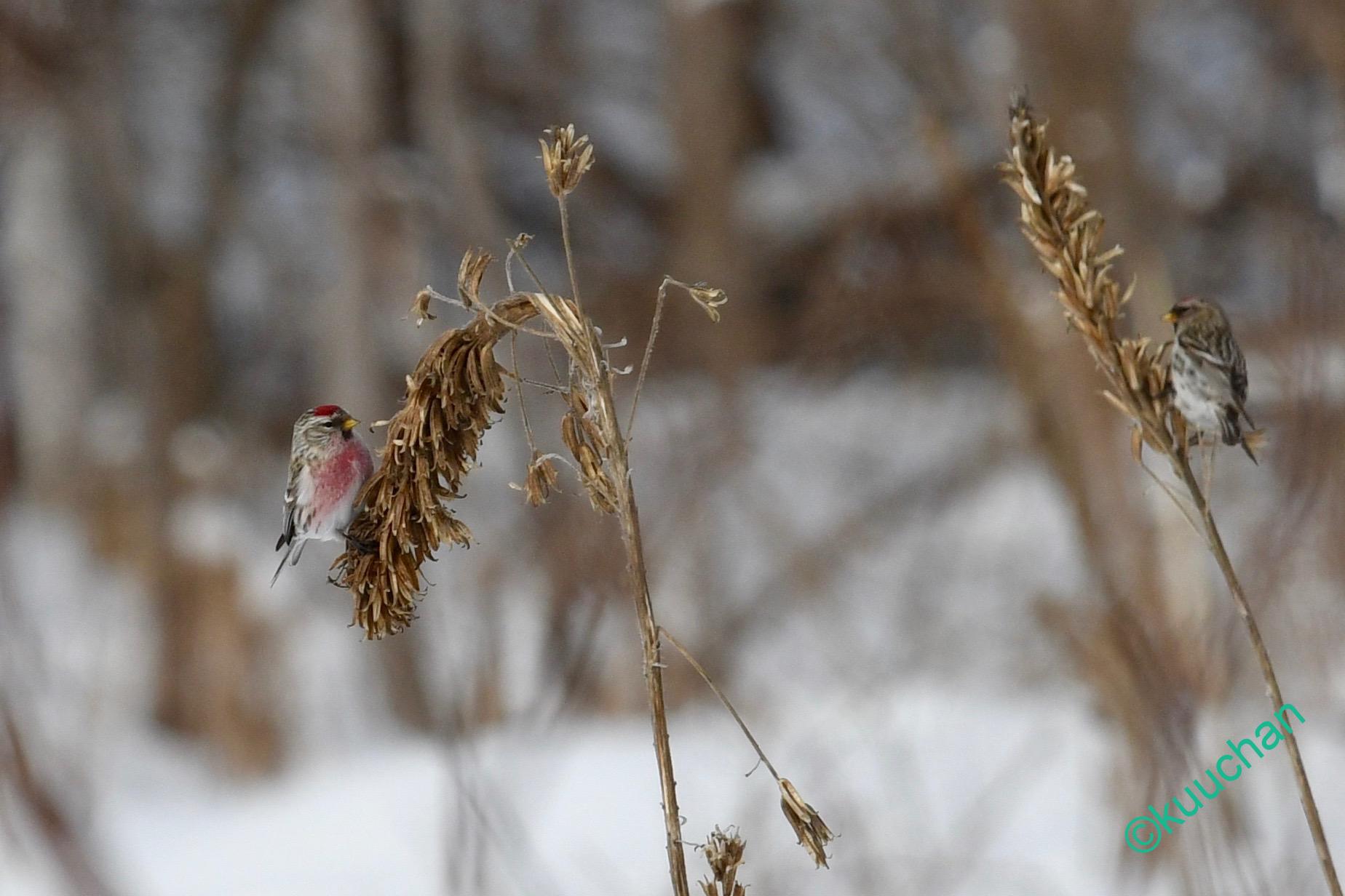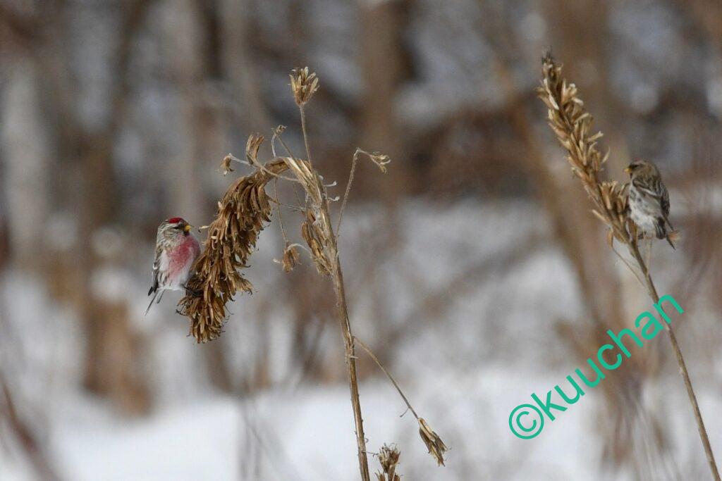 少し先にすすんだところにも数羽のベニヒワがいて、全部で10羽にも満たない小さな群れのようでした。