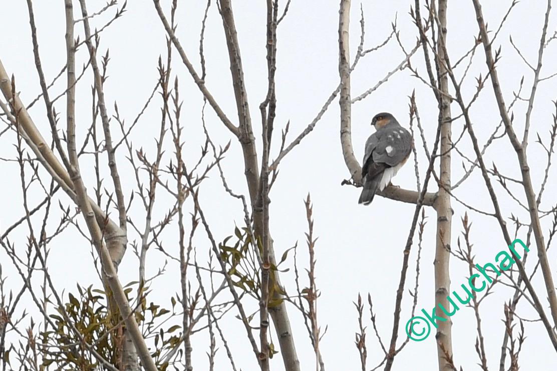 どうやら近くに天敵がいたようです。ほら、ハイタカが飛んできた!!